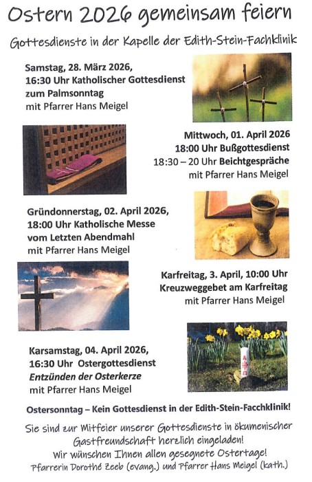 Gottesdienst in der Ediht-Stein-Fachklinik „Ostern 2026 gemeinsam Feiern“ Weiterlesen »